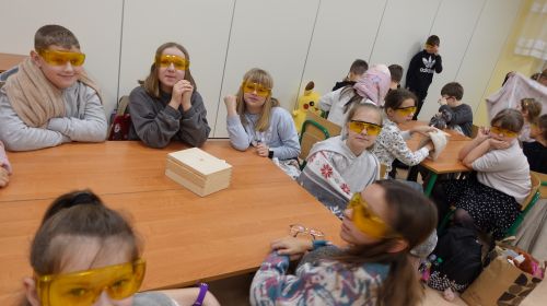 Dużym zainteresowaniem cieszyła się także część poświęcona laserom, podczas której dzieci poznały ich działanie i zastosowania.