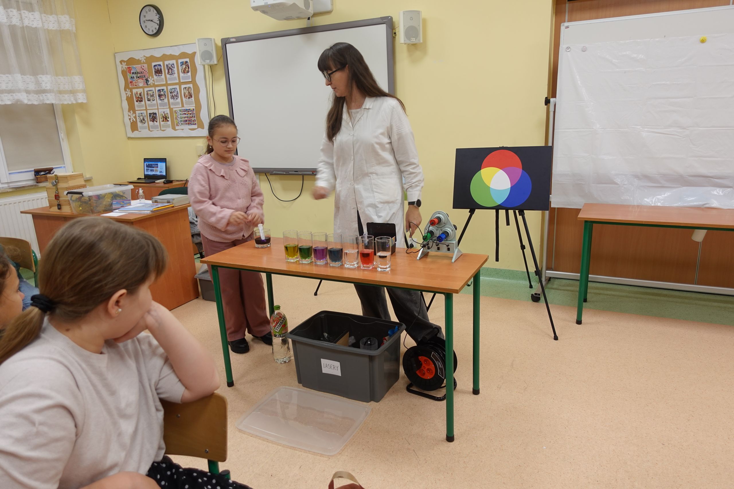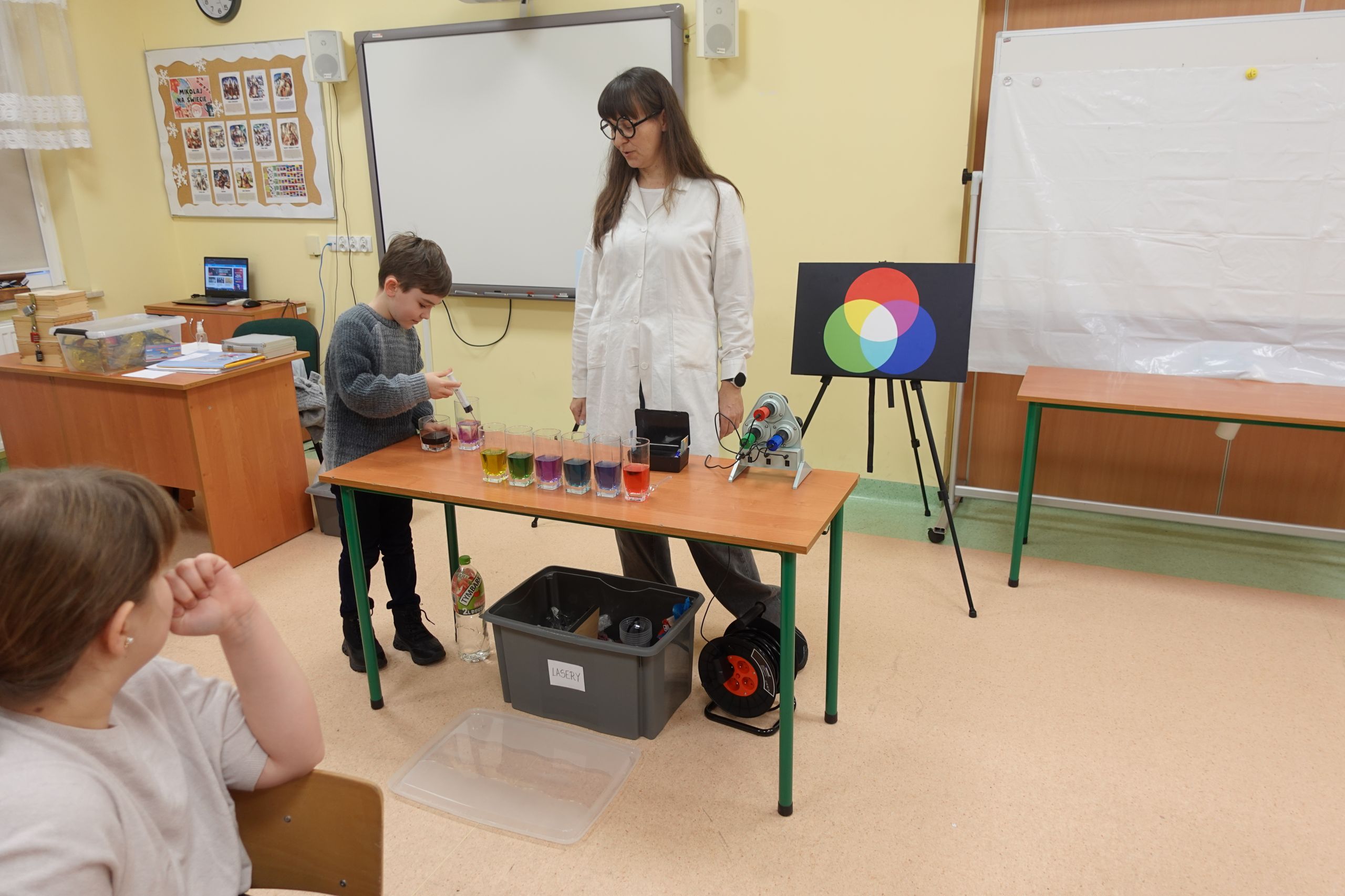 Oprócz podróży po gwiazdach i poznawania tajemnic kosmosu, dzieci uczestniczyły w ciekawych warsztatach dotyczących barw i światła. Uczniowie dowiedzieli się, w jaki sposób powstają kolory, jak rozszczepia się światło oraz jakie zjawiska optyczne możemy obserwować na co dzień.