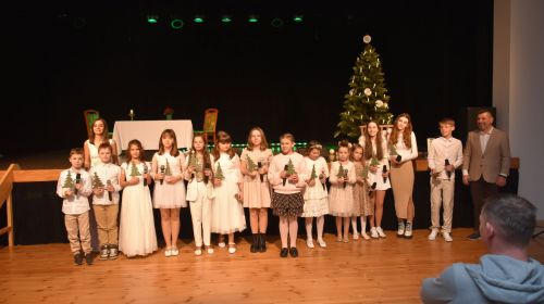 9 grudnia spotkaliśmy się w Gminnym Ośrodku Kultury w Śliwicach na koncercie świątecznym ,,Pod choinką pragnień", przygotowanym przez uczniów kółka muzycznego, działającego od kilku lat w naszej szkole, przy wsparciu młodzieży kółka wokalnego Szkoły Podstawowej w Śliwicach. Dwumiesięczne starania i ciężkie próby wydały cudowny efekt.