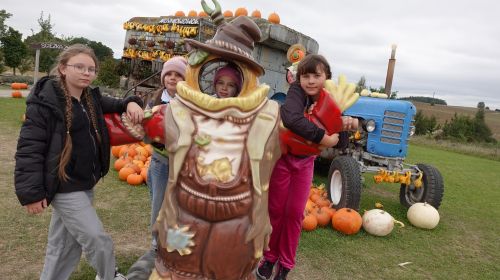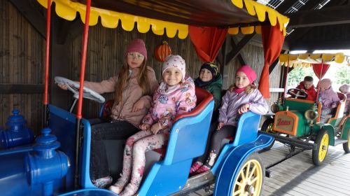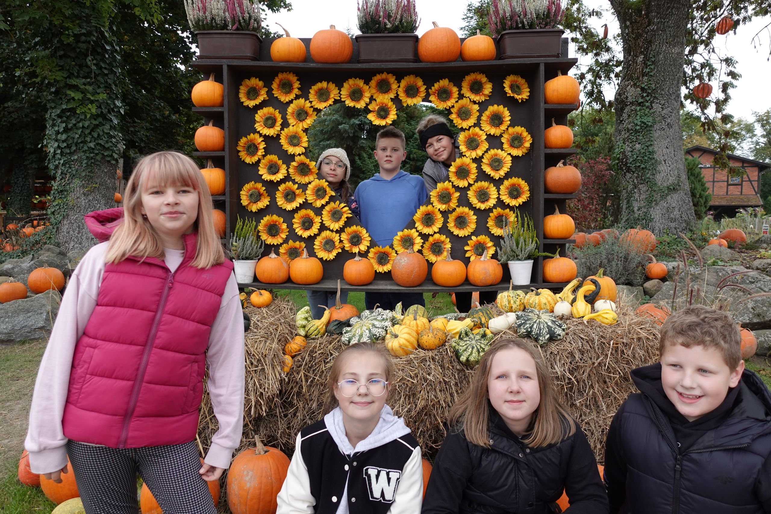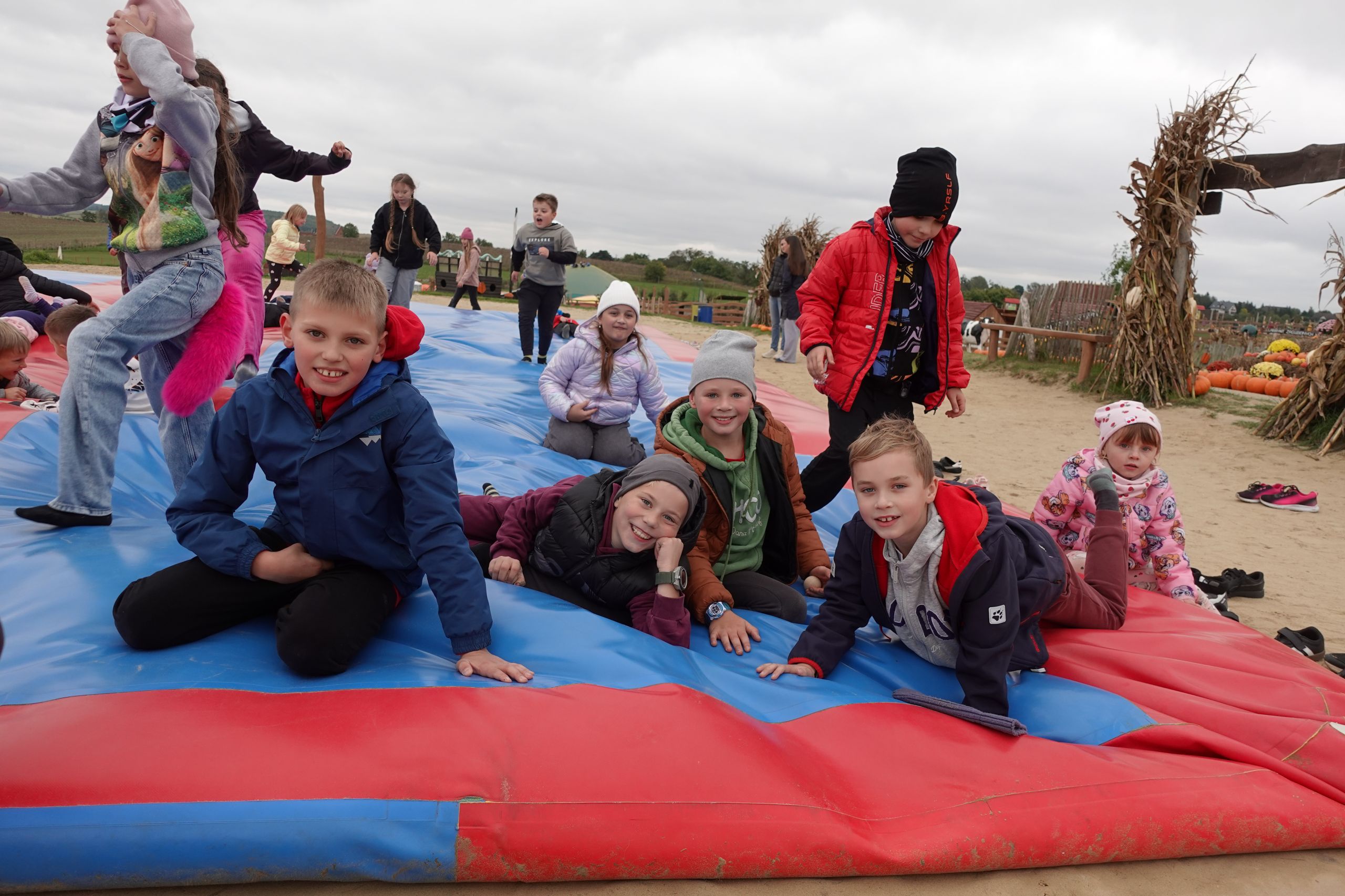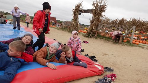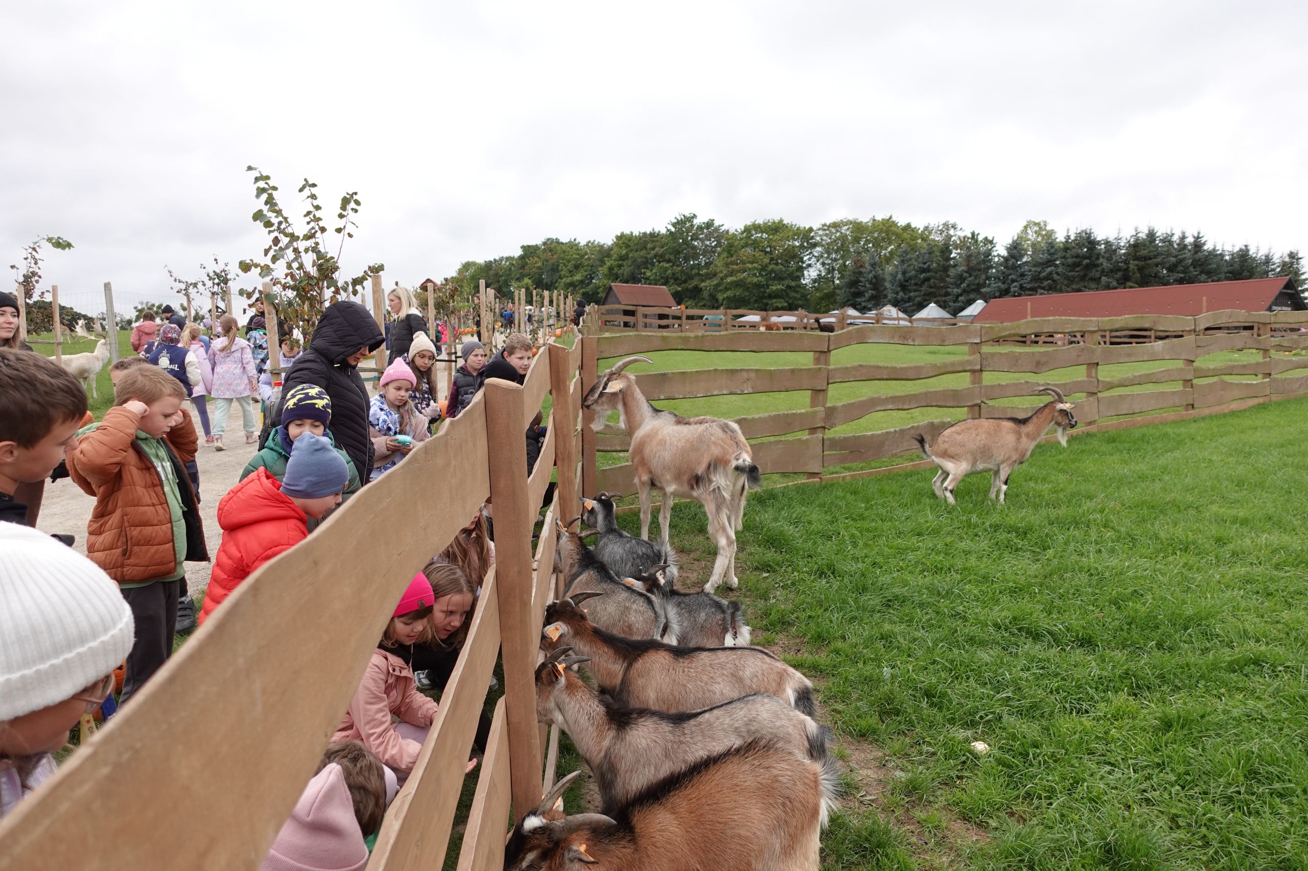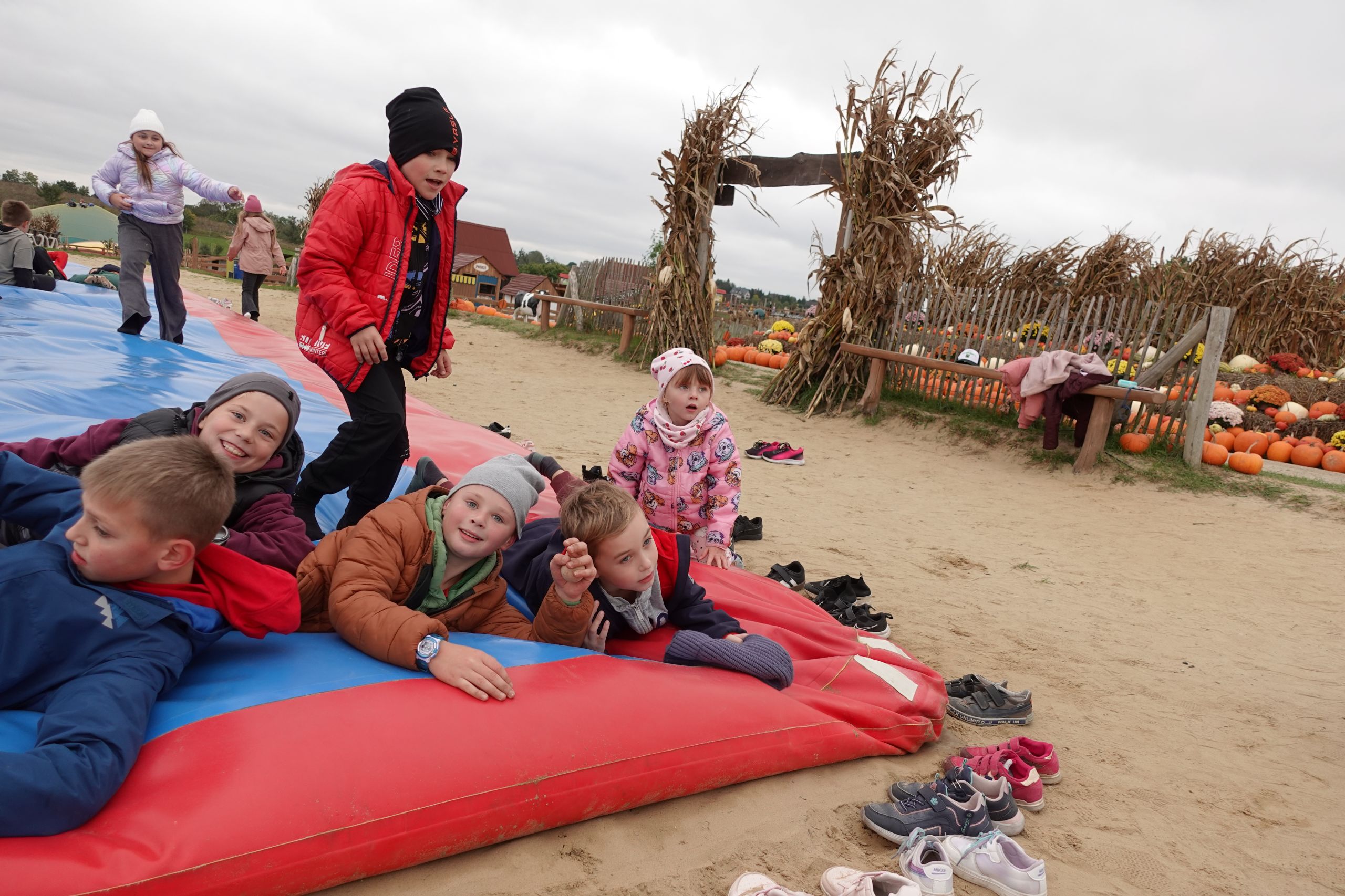 Podczas pobytu dzieci miały okazję zobaczyć setki różnorodnych dyń – dużych, małych, pomarańczowych i prążkowanych. Uczniowie uczestniczyli w zabawach na świeżym powietrzu, karmili króliki, kozy, alpaki, osły oraz daniele.
