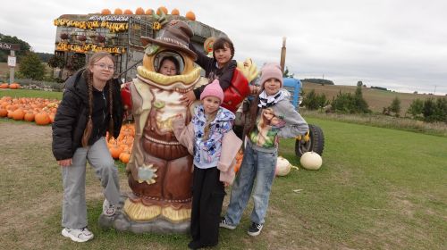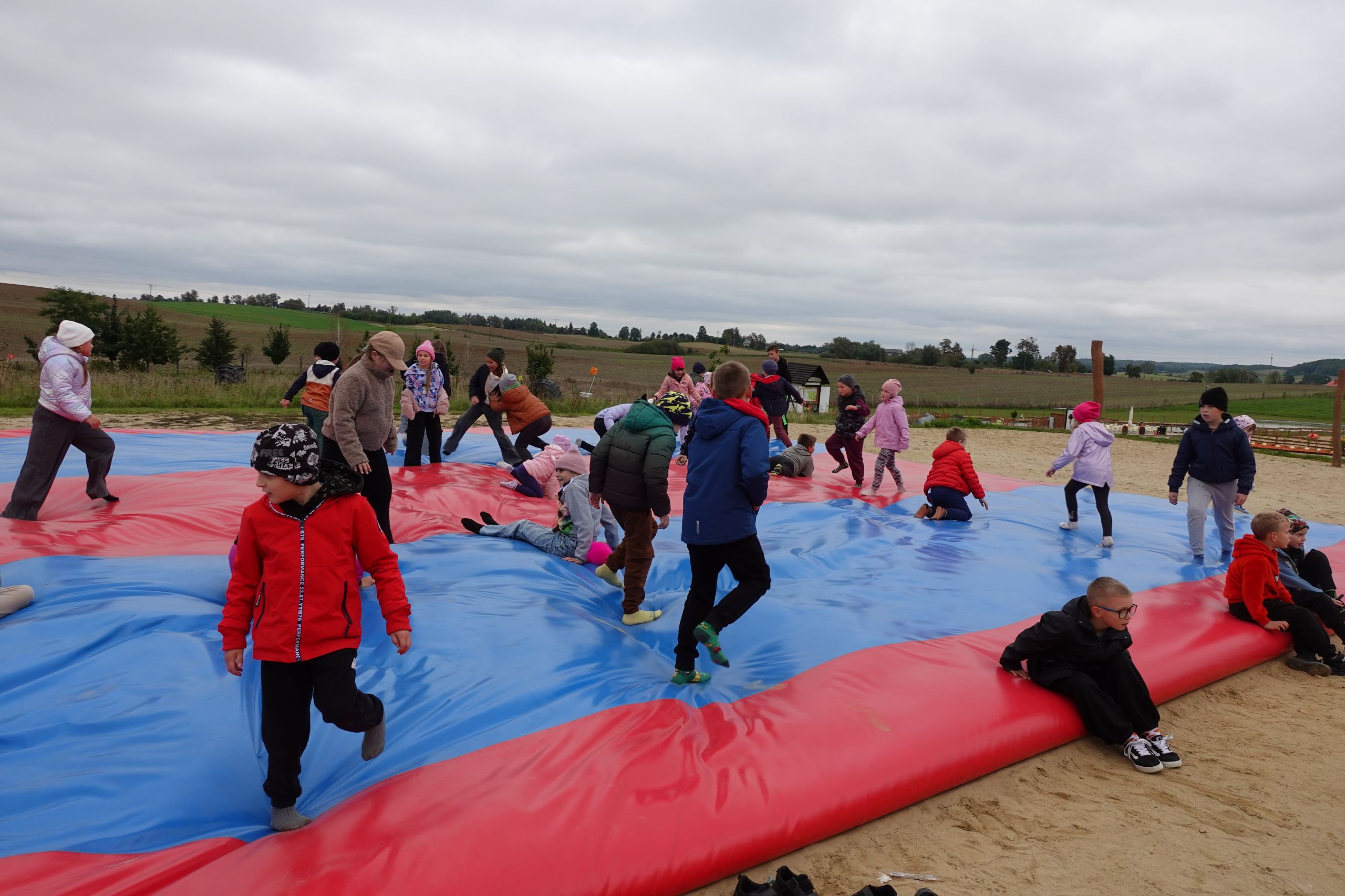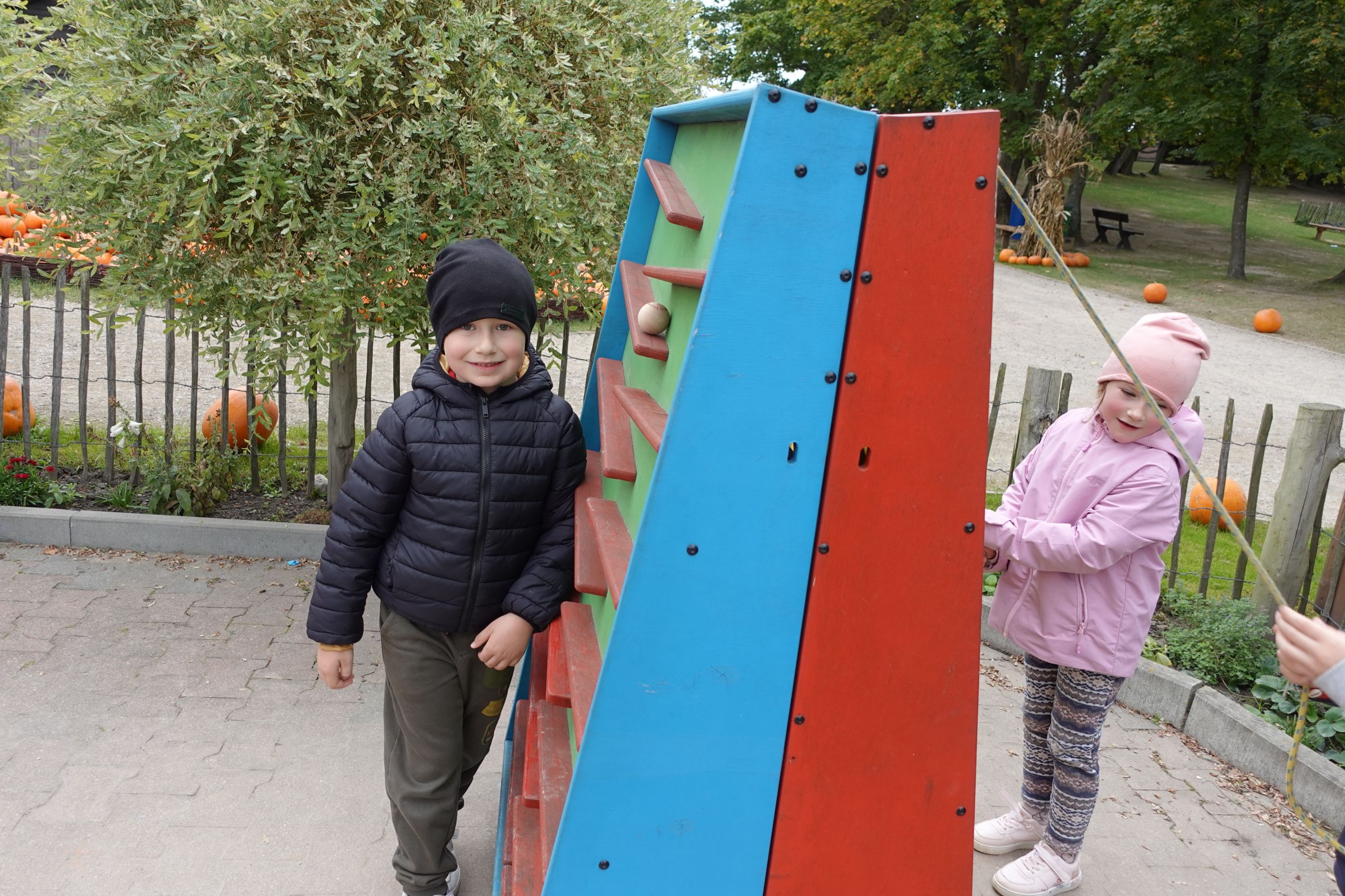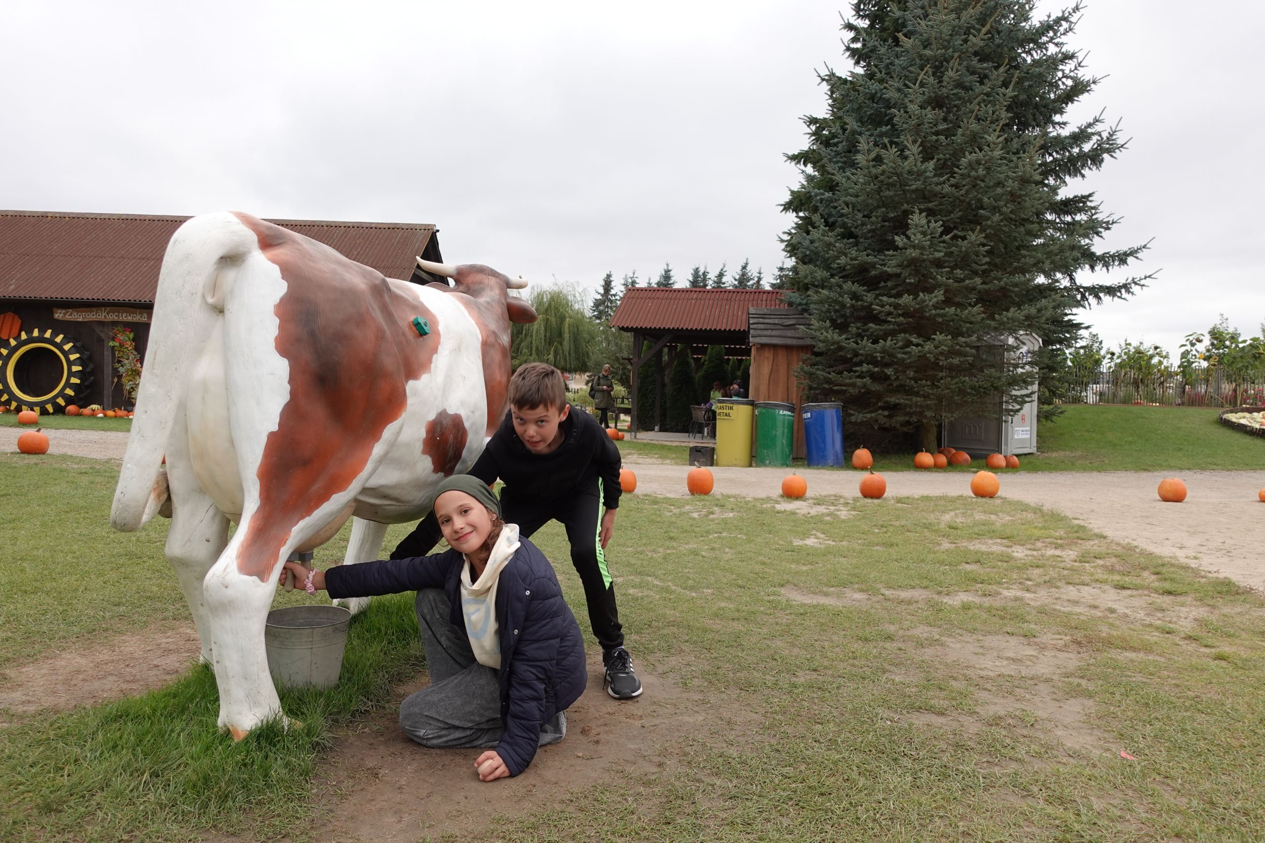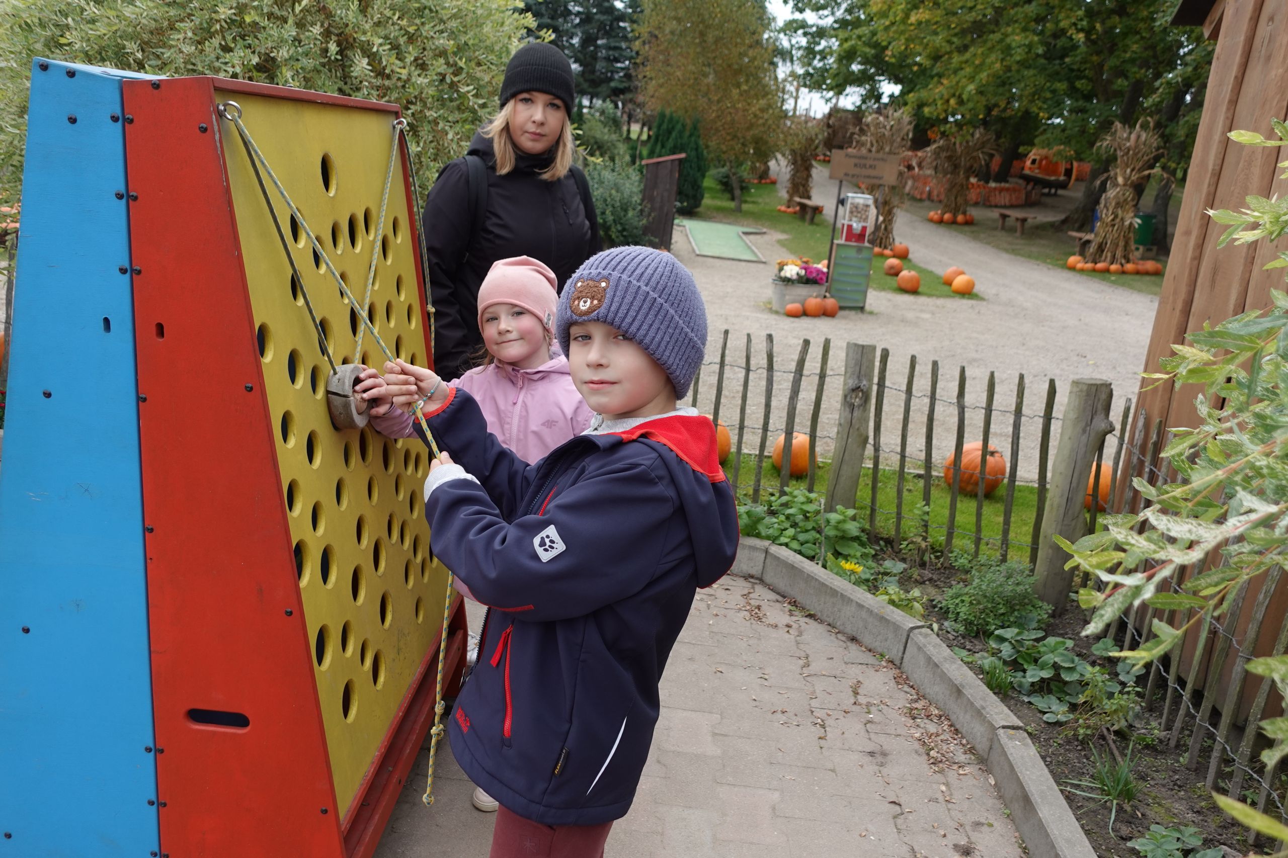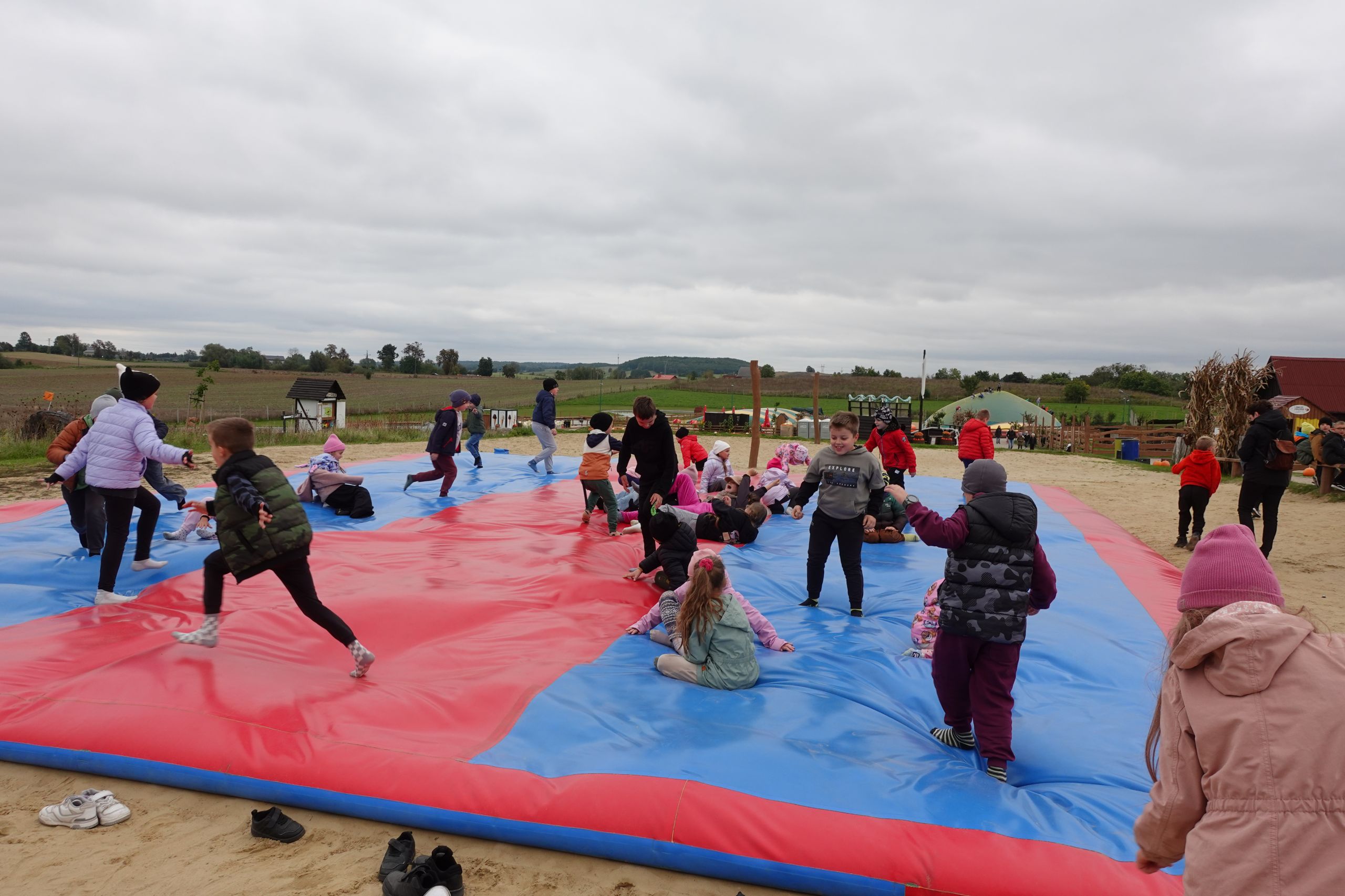 Podczas pobytu dzieci miały okazję zobaczyć setki różnorodnych dyń – dużych, małych, pomarańczowych i prążkowanych. Uczniowie uczestniczyli w zabawach na świeżym powietrzu, karmili króliki, kozy, alpaki, osły oraz daniele.