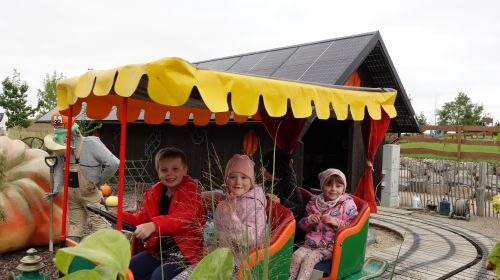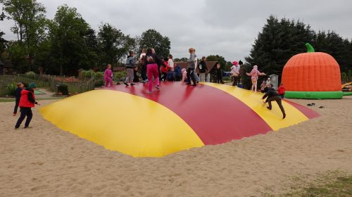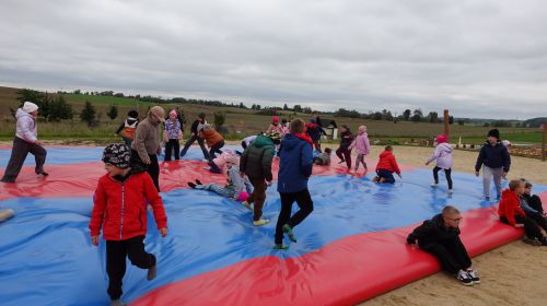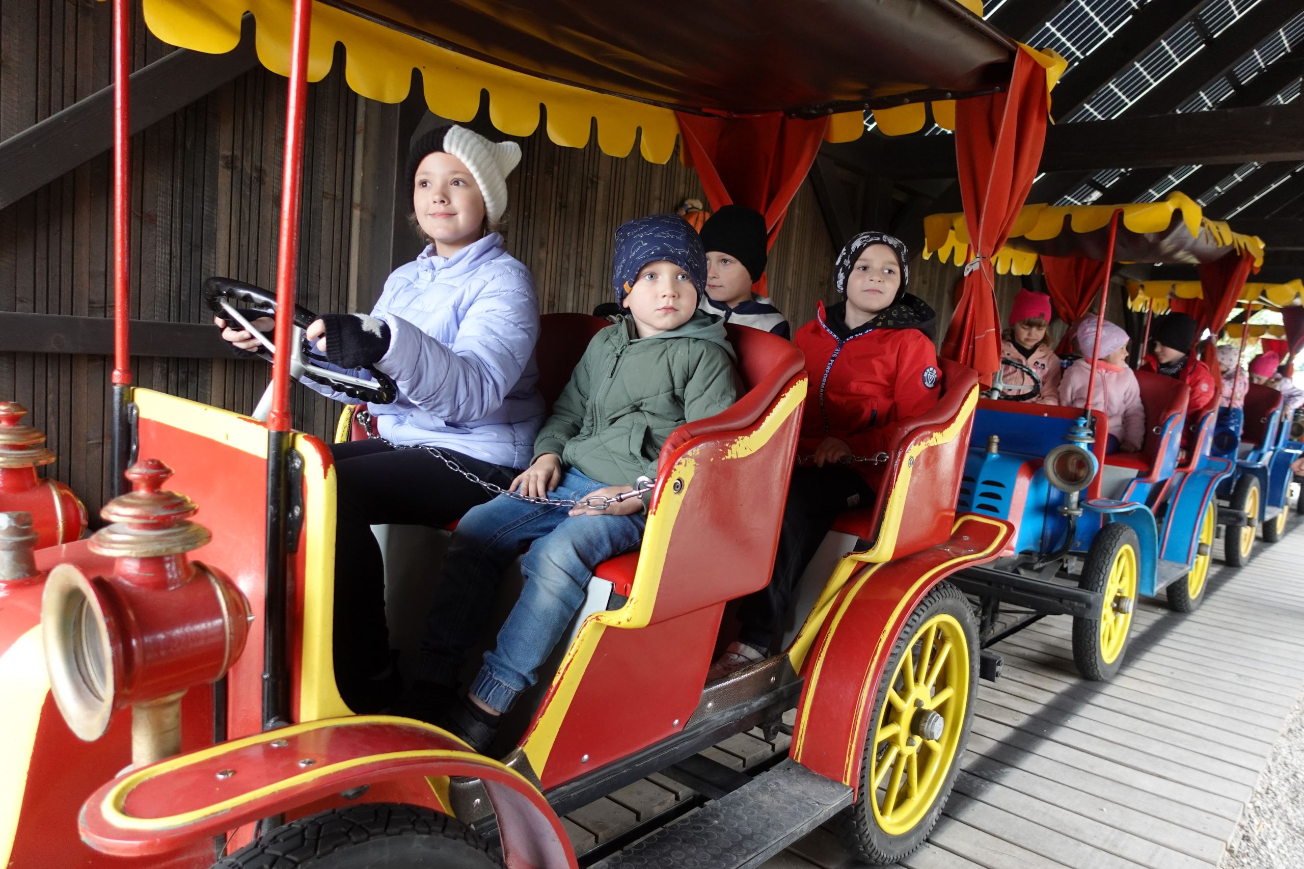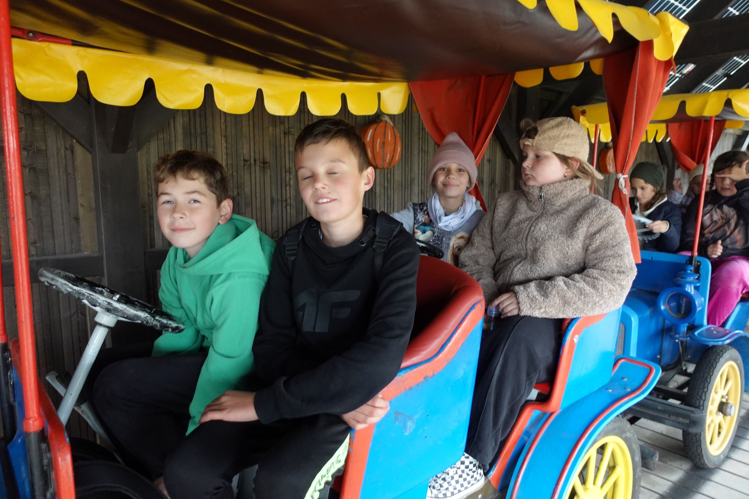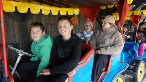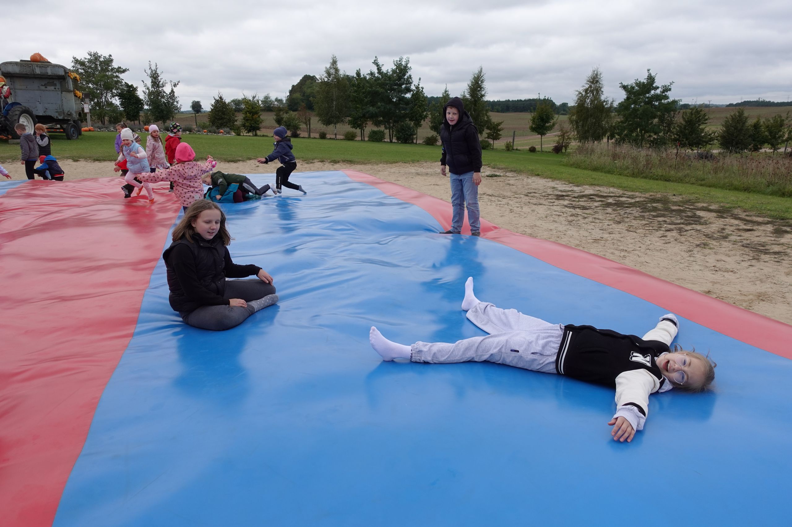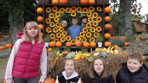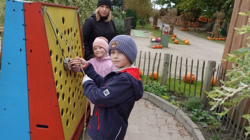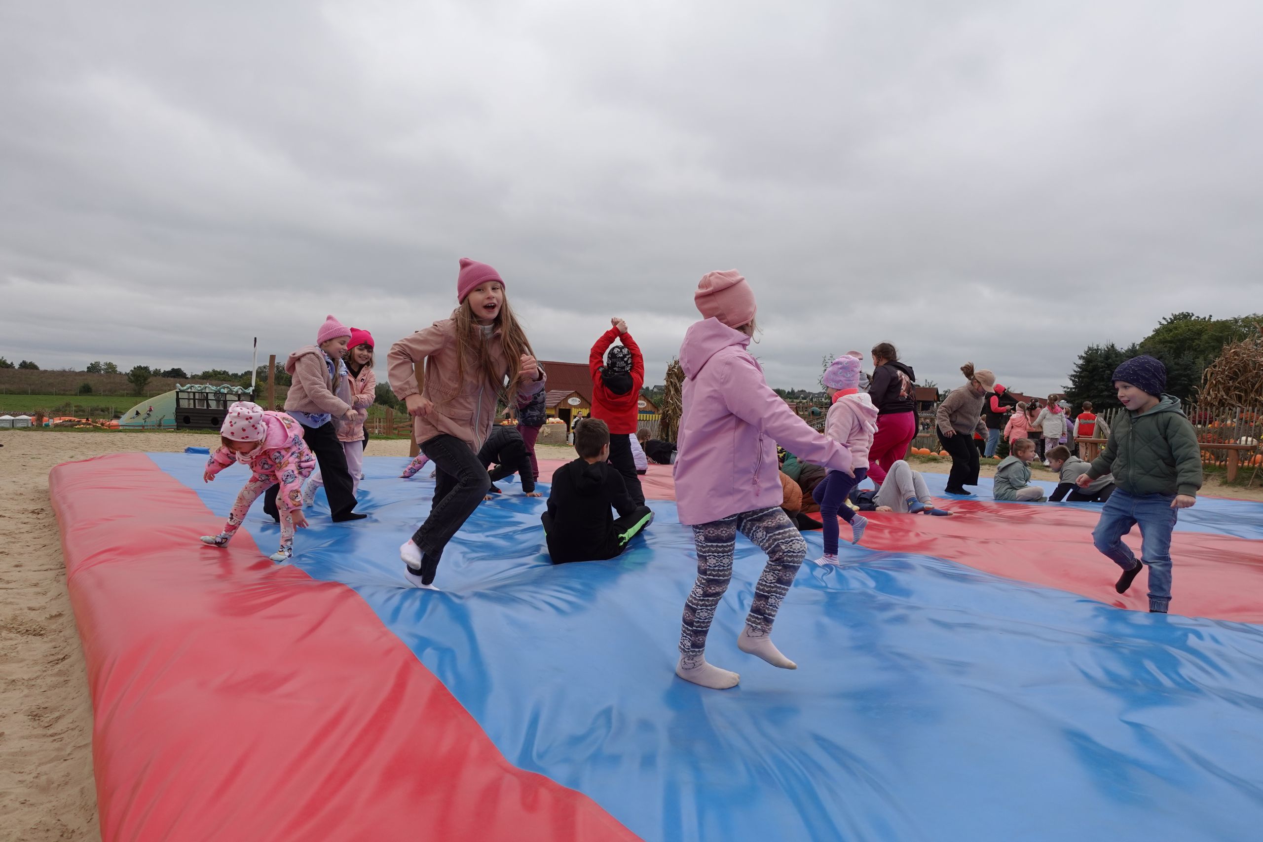 Podczas pobytu dzieci miały okazję zobaczyć setki różnorodnych dyń – dużych, małych, pomarańczowych i prążkowanych. Uczniowie uczestniczyli w zabawach na świeżym powietrzu, karmili króliki, kozy, alpaki, osły oraz daniele.