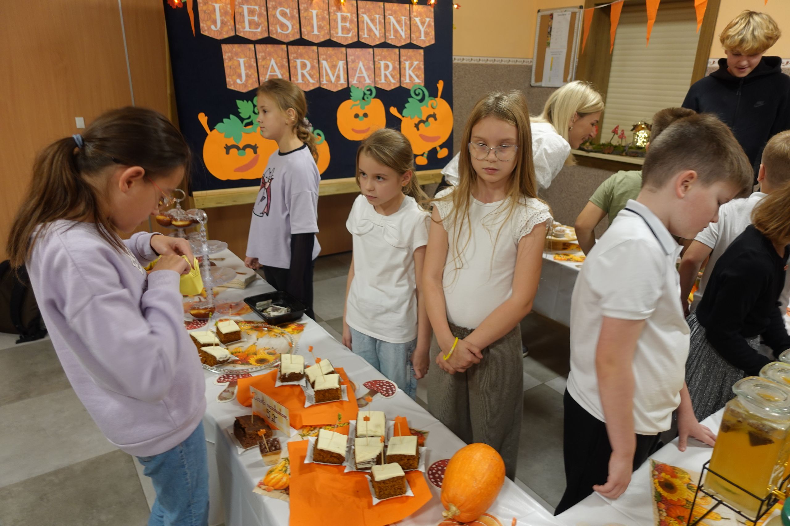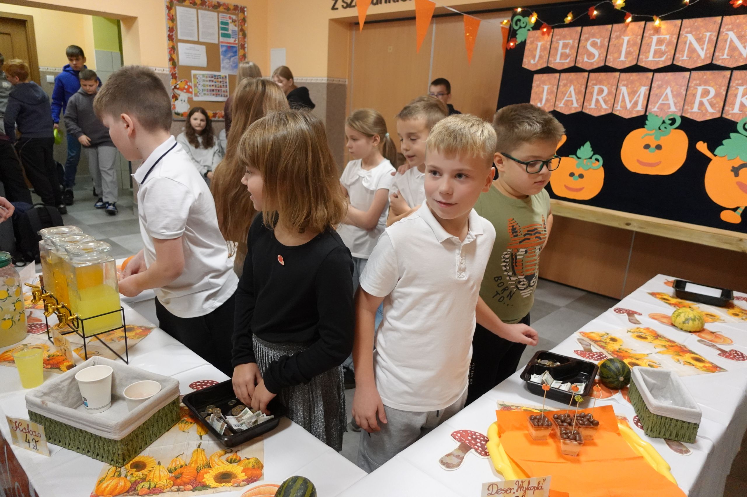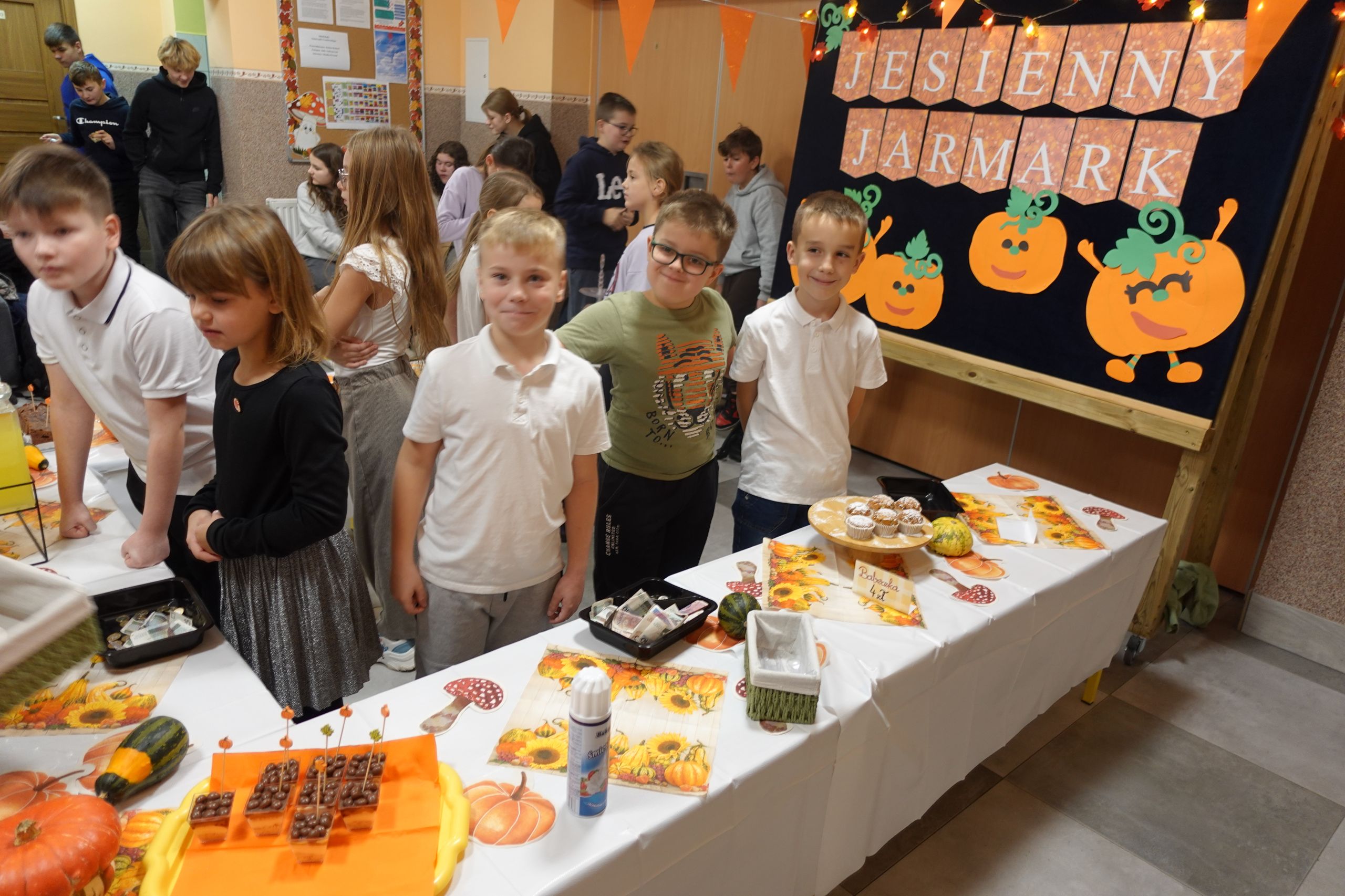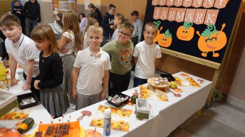 Jesień nie musi być wcale szara i smutna, przekonali się o tym dziś nasi uczniowie. Dzieci z klasy II przygotowały dla swoich kolegów jesienny jarmark. Pomysł powstał już na początku września, kiedy uczniowie prezentowali swoje plany na nowy rok szkolny. Jeszcze wtedy nie wiedzieli, że będzie wymagało to od nich tyle wysiłku, zaangażowania i umiejętności dobrego planowania, ale byli już przekonani, że przyniesie wiele frajdy i satysfakcji.