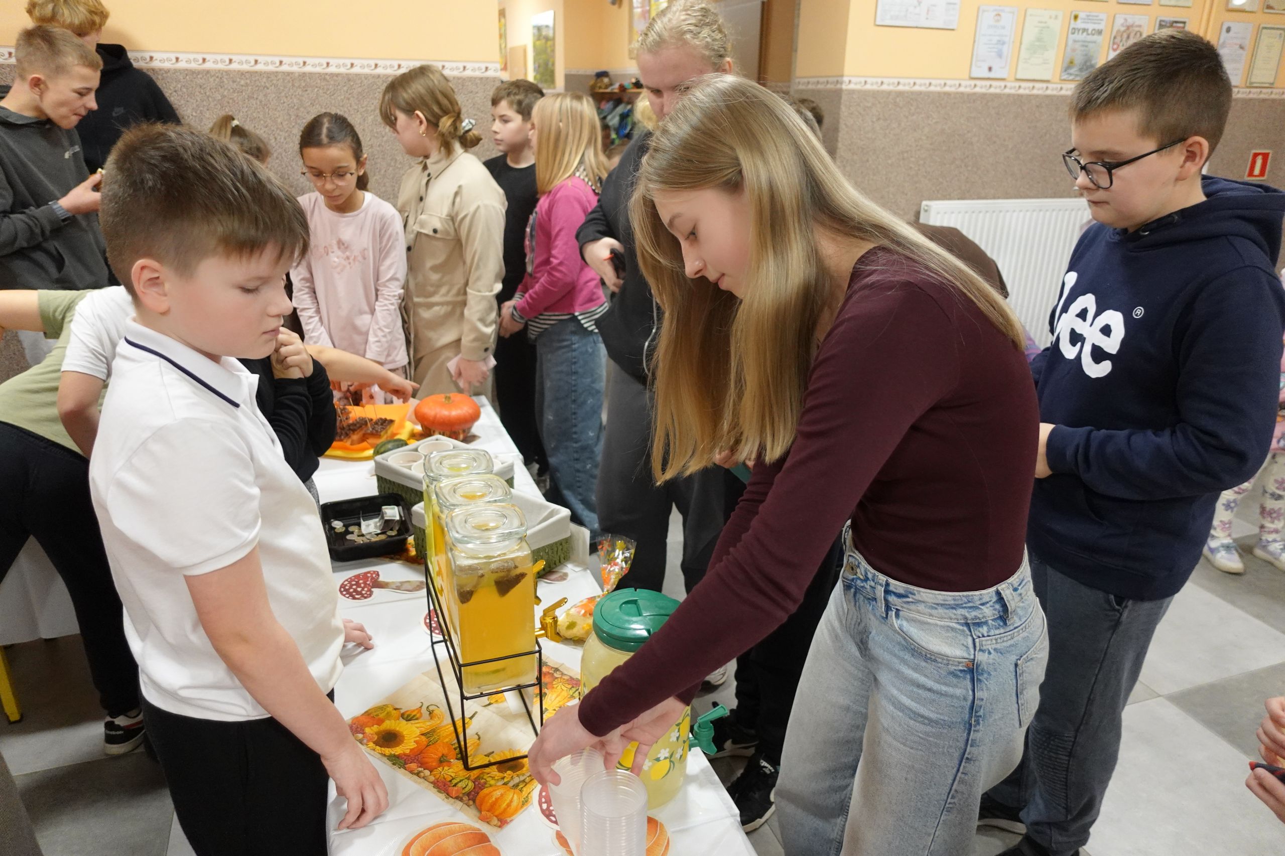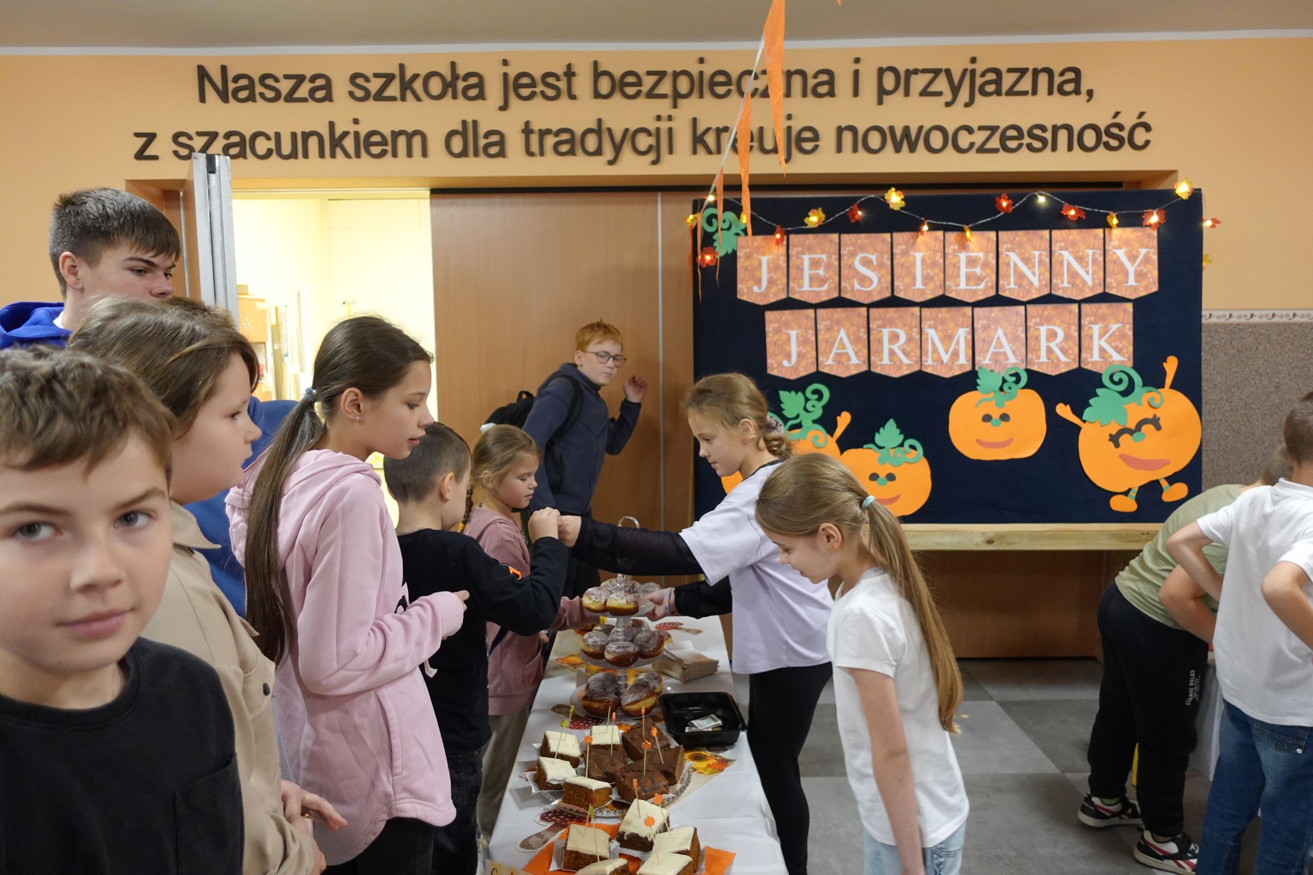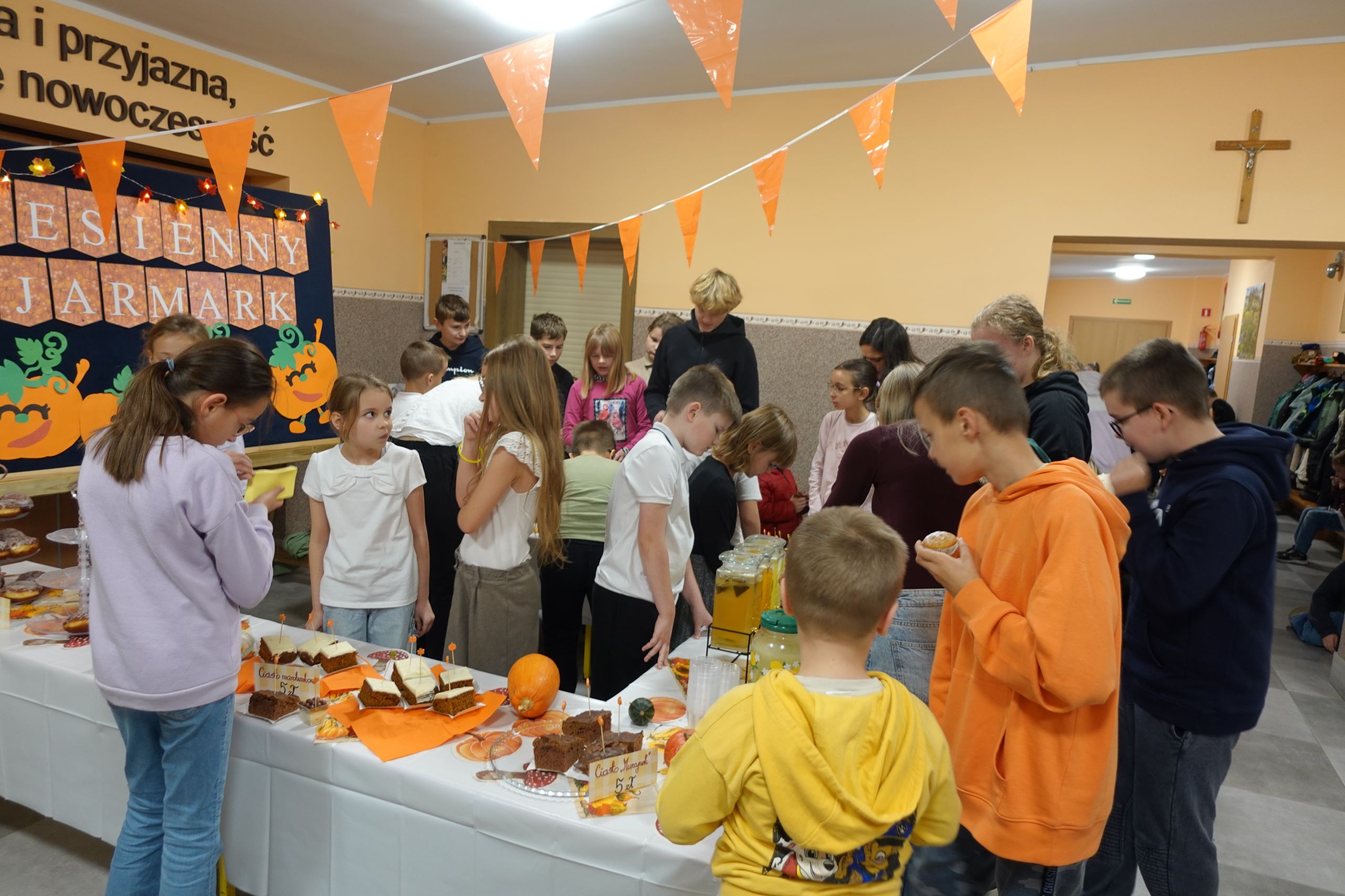 Jesień nie musi być wcale szara i smutna, przekonali się o tym dziś nasi uczniowie. Dzieci z klasy II przygotowały dla swoich kolegów jesienny jarmark. Pomysł powstał już na początku września, kiedy uczniowie prezentowali swoje plany na nowy rok szkolny. Jeszcze wtedy nie wiedzieli, że będzie wymagało to od nich tyle wysiłku, zaangażowania i umiejętności dobrego planowania, ale byli już przekonani, że przyniesie wiele frajdy i satysfakcji.