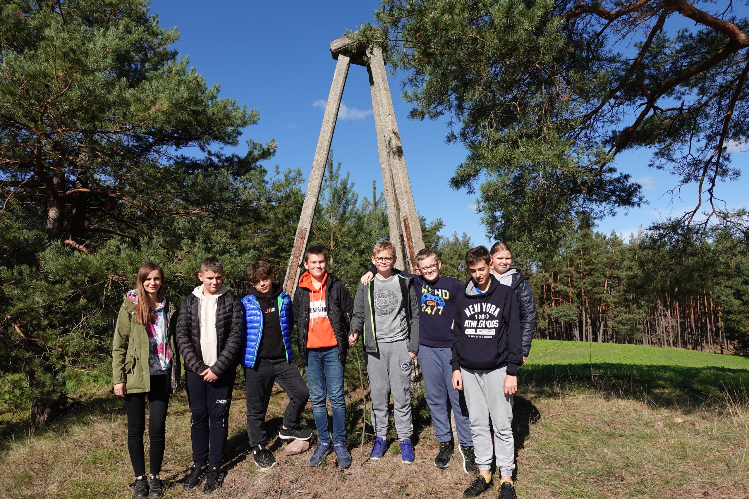 Podsumowując tematy dotyczące zlodowaceń, a także ukształtowania powierzchni Polski razem z klasą VII wyruszyliśmy na krótką wycieczkę po najbliższej okolicy. Wybraliśmy się do Brzozowych Błot, skąd skierowaliśmy się w stronę Jabłonki, gdzie wśród pól stoi zapomniana wieża triangulacyjna (geodezyjna). Usytuowana na 131,9 m.n.p.m. dumnie strzeże historii polskiej geodezji. Wieże triangulacyjne zostały wyparte przez GPS i nie mają już racji bytu, ich widok jednak intryguje i ciekawi nie tylko uczniów. Z miejsca w którym usytuowana jest wieża rozciąga się przepiękny widok, teren wyrzeźbiony przez lądolód, typowy pagórkowaty pas Pojezierza Pomorskiego. Pogoda sprzyjała, nastroje również.