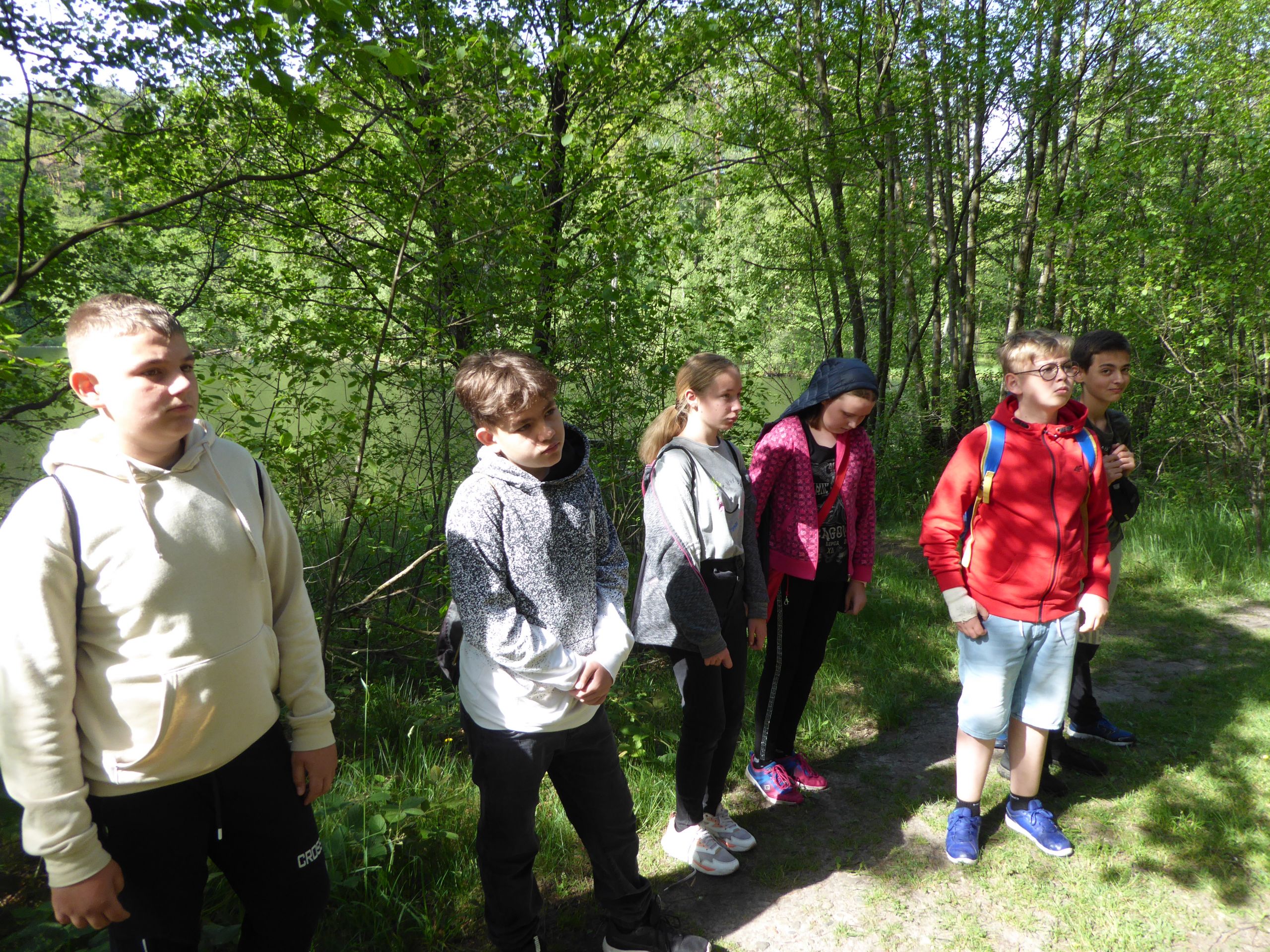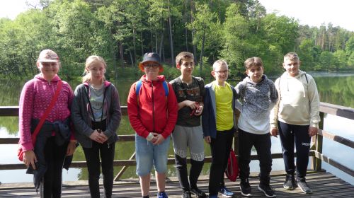 Dnia 6 czerwca 2022r. uczniowie klasy VI wraz z wychowawcą – panią Jolantą Bukowską oraz panią Dagmarą Wasielewską udali się na wycieczkę do Nadleśnictwa Trzebciny. Tam pracownik Nadleśnictwa oprowadził nas po Ścieżce Przyrodniczo – Leśnej "Jezioro Wypalanki". Trasa ścieżki biegnie wokół niewielkiego śródleśnego jeziora i składa się na nią 12 przystanków z tablicami poglądowymi charakteryzującymi następujące zagadnienia: zabezpieczenie przeciwpożarowe lasów, sukcesja, ochrona lasu – czynniki zagrażające lasom, gospodarka łowiecka, budowa piętrowa lasu, drzewo a drewno, martwe drzewo, punkt widokowy, bóbr w ekosystemie leśnym, ols – las na wodzie, zbiornik wodny. Po spacerze upiekliśmy kiełbaski przy ognisku. Następnie udaliśmy się do Sali Wystawienniczej „Sekretarzówka", gdzie obejrzeliśmy eksponaty zwierząt, poroża, przekroje poziome i pionowe pni różnych gatunków drzew. Następnie rozpoznawaliśmy tropy różnych zwierząt, układaliśmy puzzle. Na koniec udaliśmy się do punktualarmowo-dyspozycyjnego nadleśnictwa funkcjonującego w ochronie przeciwpożarowej lasu. Wyjazd wszystkim się podobał. Pełni wrażeń wróciliśmy do szkoły.